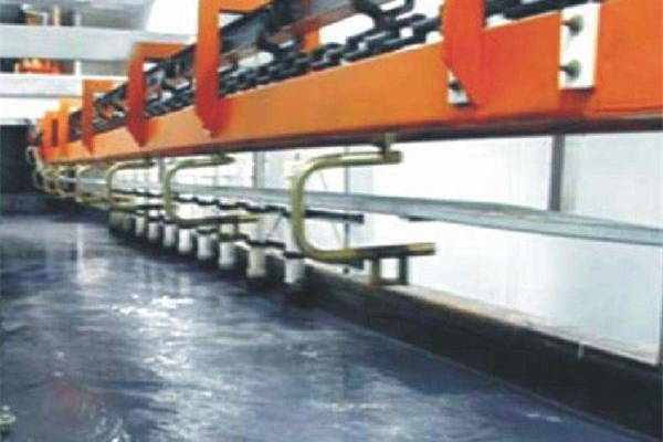 電泳涂裝設(shè)備是對工件進行電泳涂裝的重要輔助設(shè)備,可以分為連續(xù)通過式和間歇垂直升降式兩大類,連續(xù)通過式電泳設(shè)備組成流水生產(chǎn)線,適于大批量涂裝生產(chǎn);而間歇垂直升降式電泳設(shè)備,初始形式是采用單軌電葫蘆,用人工控制,適用于批量較小的涂裝作業(yè)。電泳涂裝設(shè)備的涂裝效率高,涂料損失小,涂料的利用率可達90%~95%。